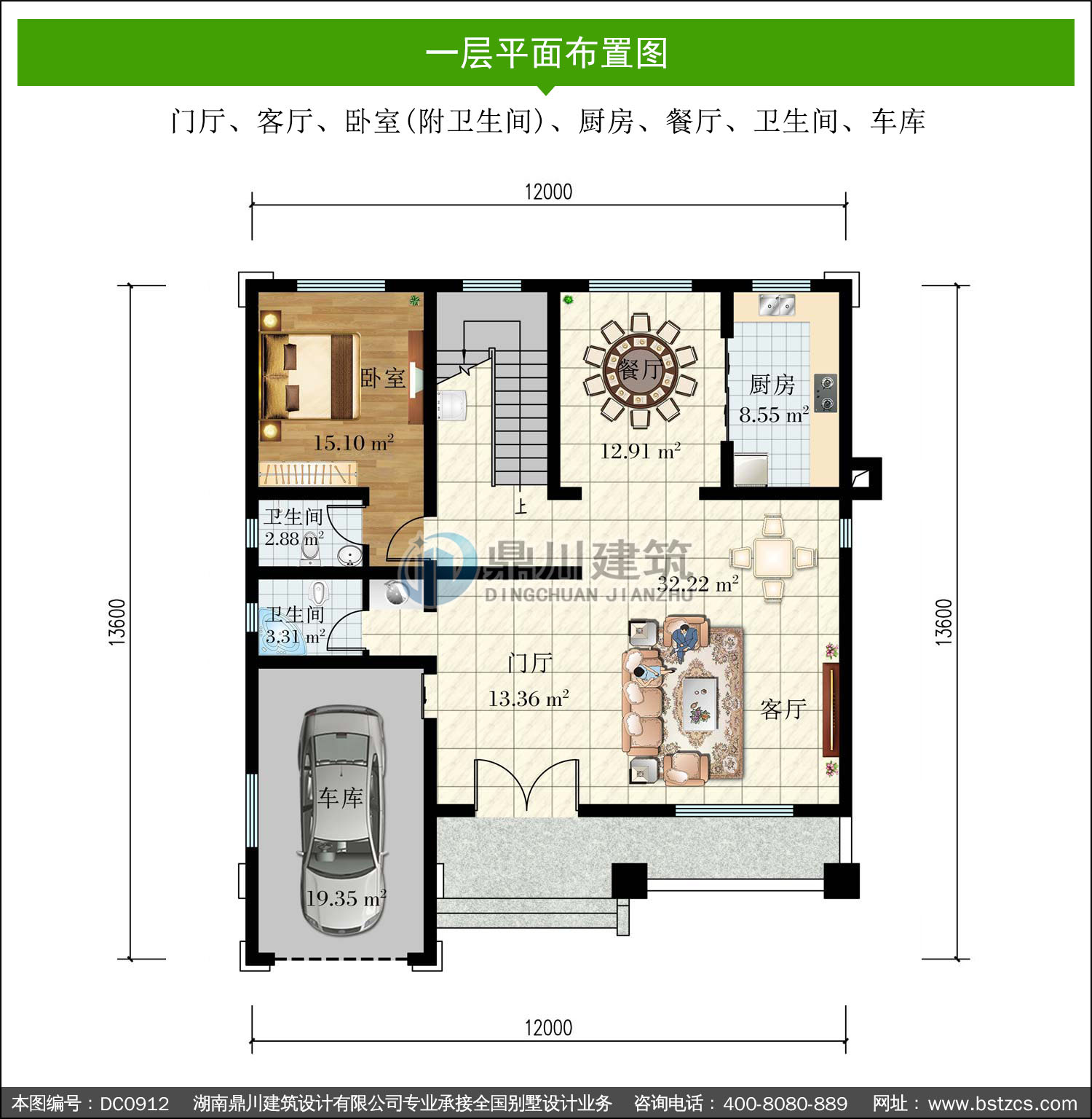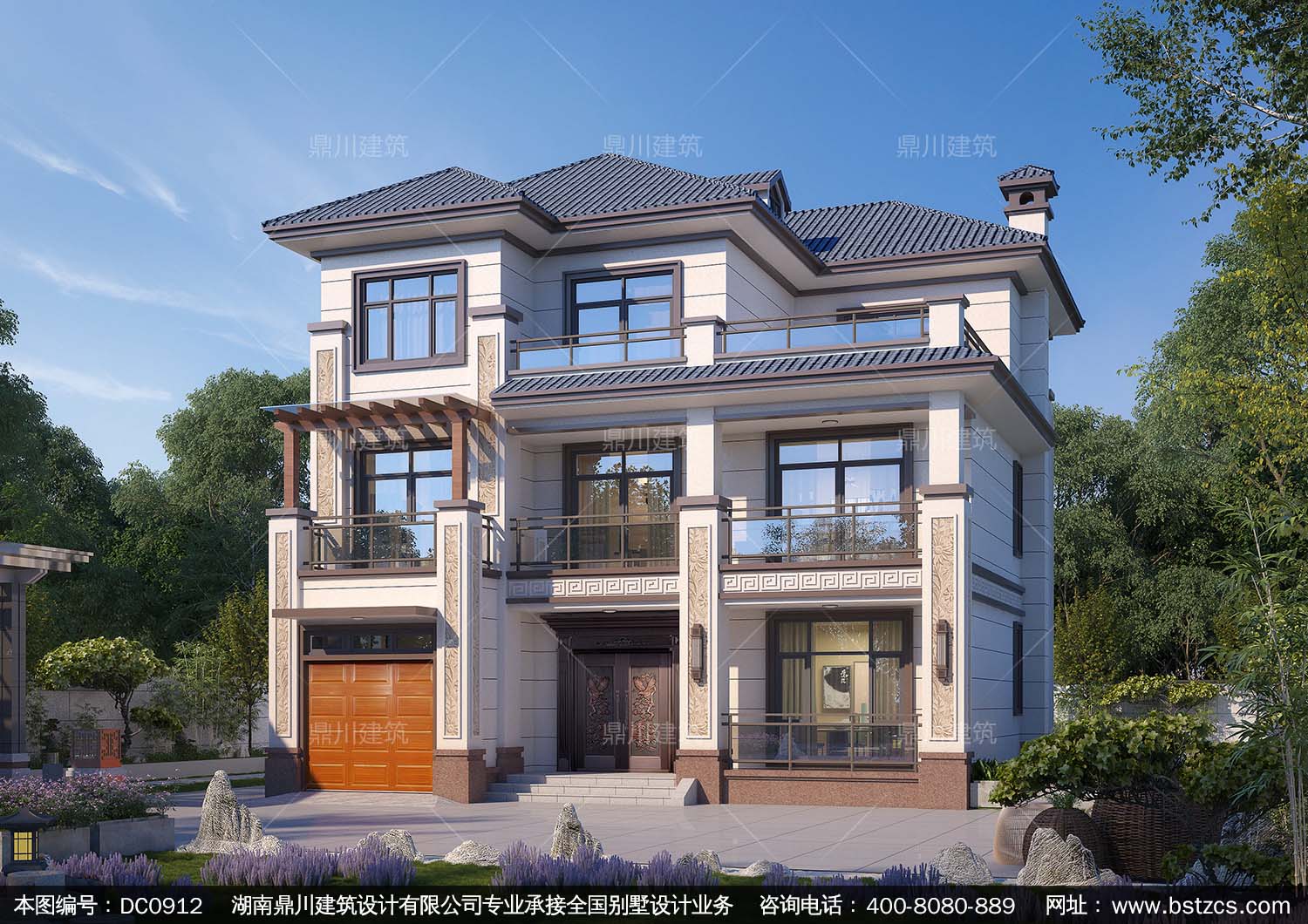 新中式三層帶車庫別墅施工圖紙及效果圖_農(nóng)村自建房屋設(shè)計(jì),鼎川建筑