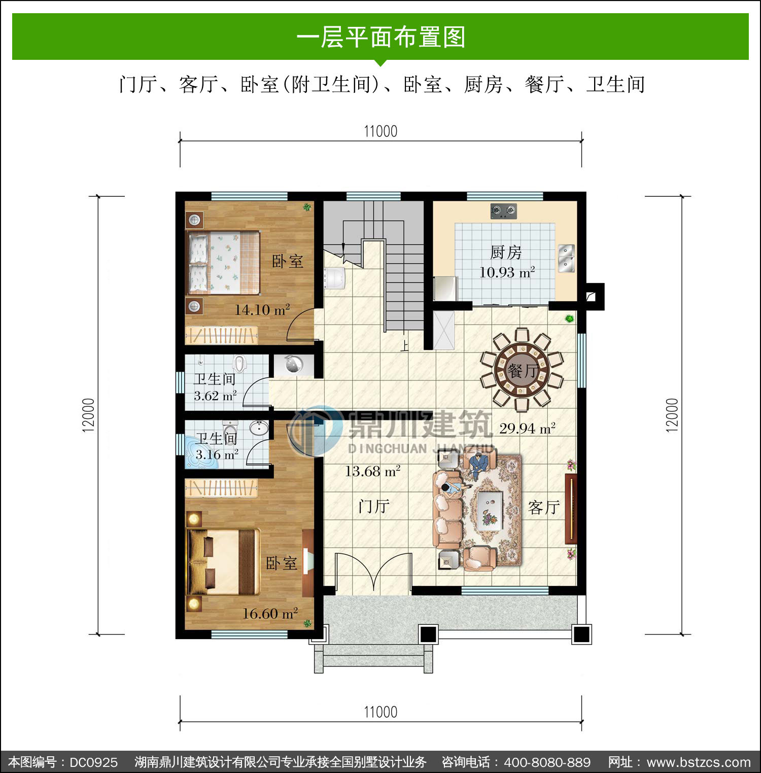 開(kāi)間: 11米 進(jìn)深: 12米 占地面積: 137.95平方米 建筑面積: 307.41平方米