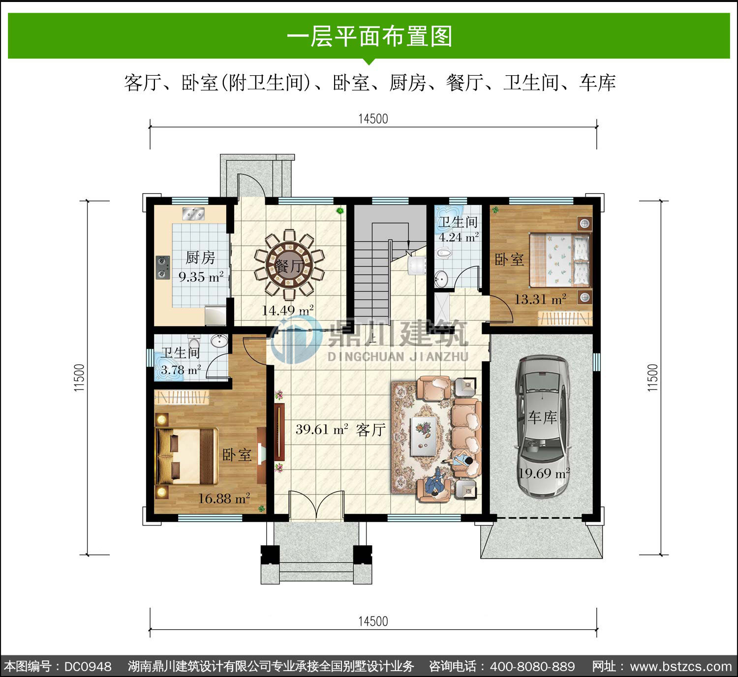 | 一 層: | 客廳、臥室(附衛(wèi)生間)、臥室、廚房、餐廳、衛(wèi)生間、車庫 | |||