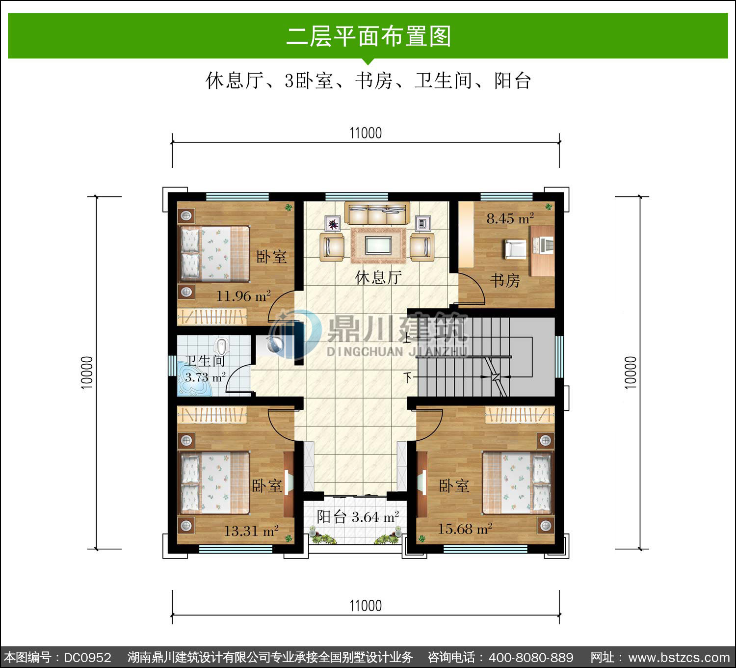 | 二 層: | 休息廳、3臥室、書房、衛(wèi)生間、陽臺 | |||