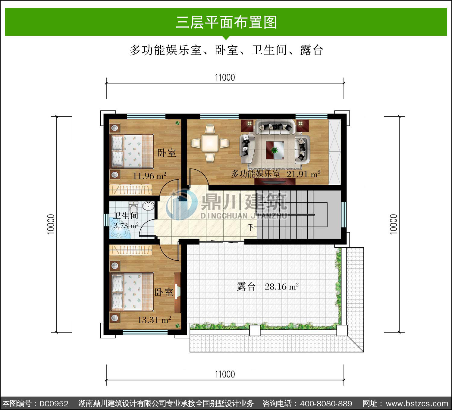 | 三 層: | 多功能娛樂室、臥室、衛(wèi)生間、露臺 | |||