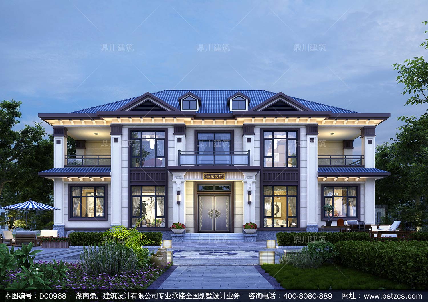 新中式二層共堂屋雙拼別墅圖紙及效果圖_農(nóng)村兄弟自建別墅,鼎川建筑