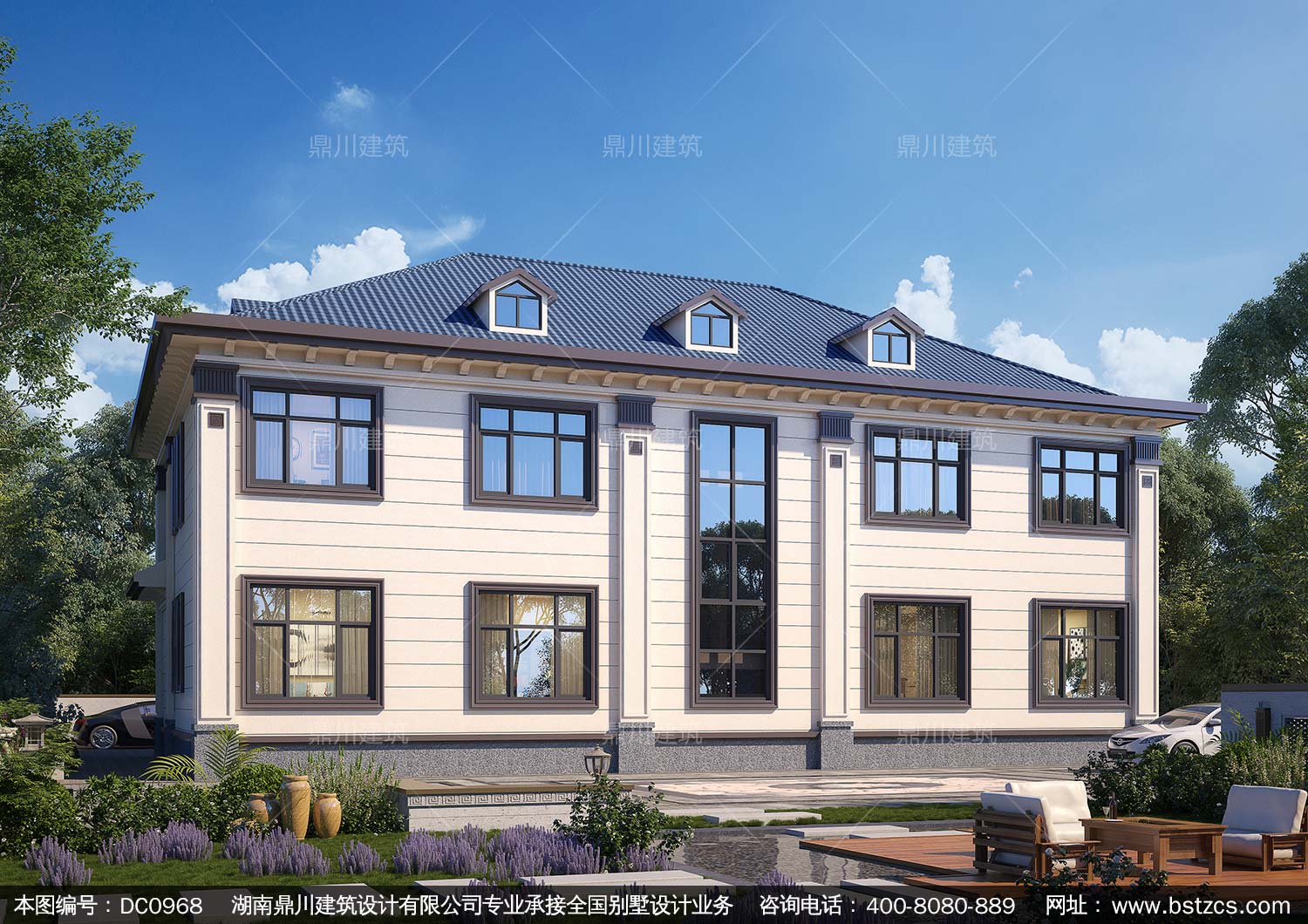 漂亮的二層雙拼別墅設計圖紙_農(nóng)村雙拼自建房設計圖,鼎川建筑