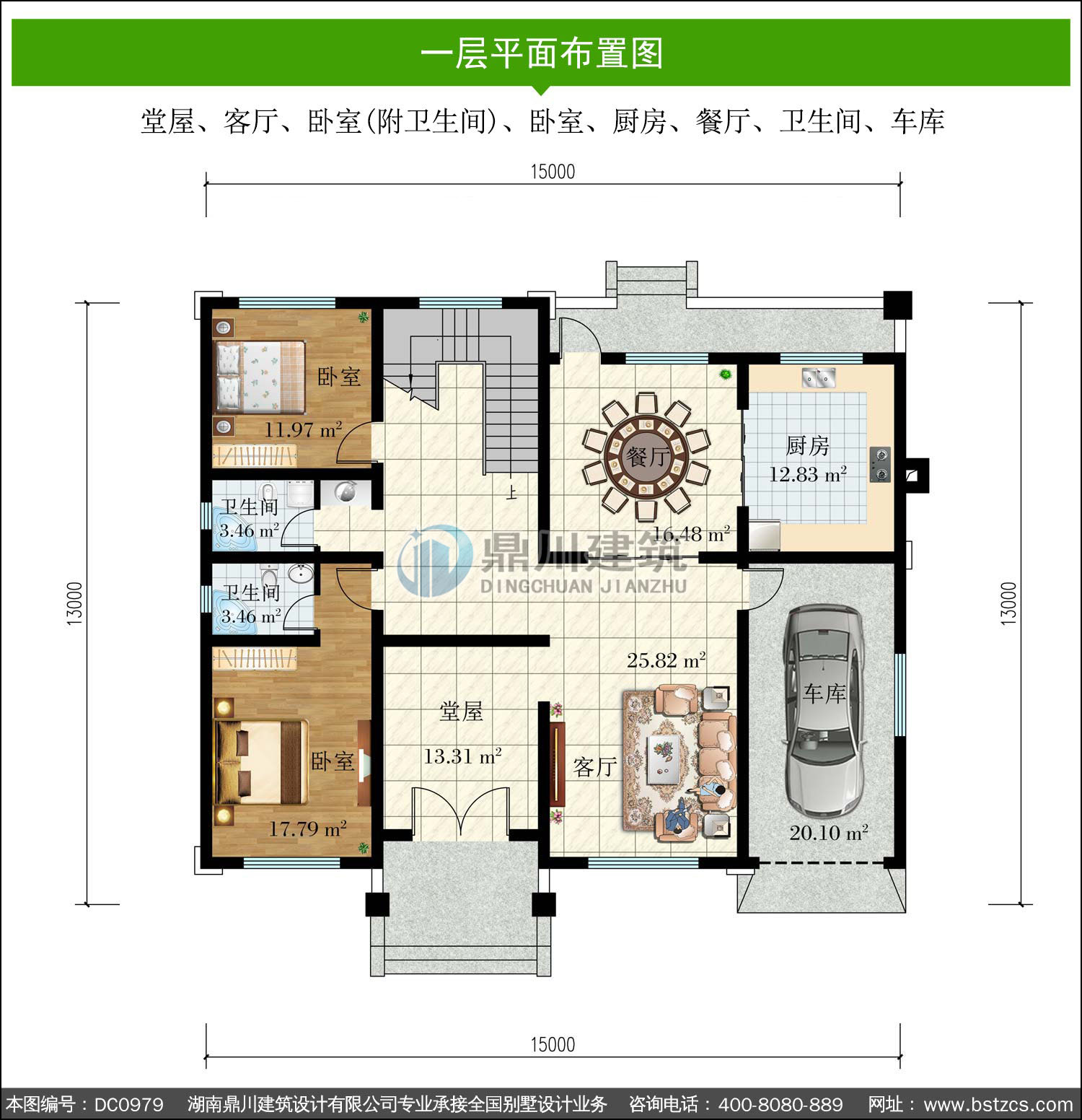 新中式二層帶車庫別墅施工圖紙及效果圖_農(nóng)村自建別墅設(shè)計,鼎川建筑