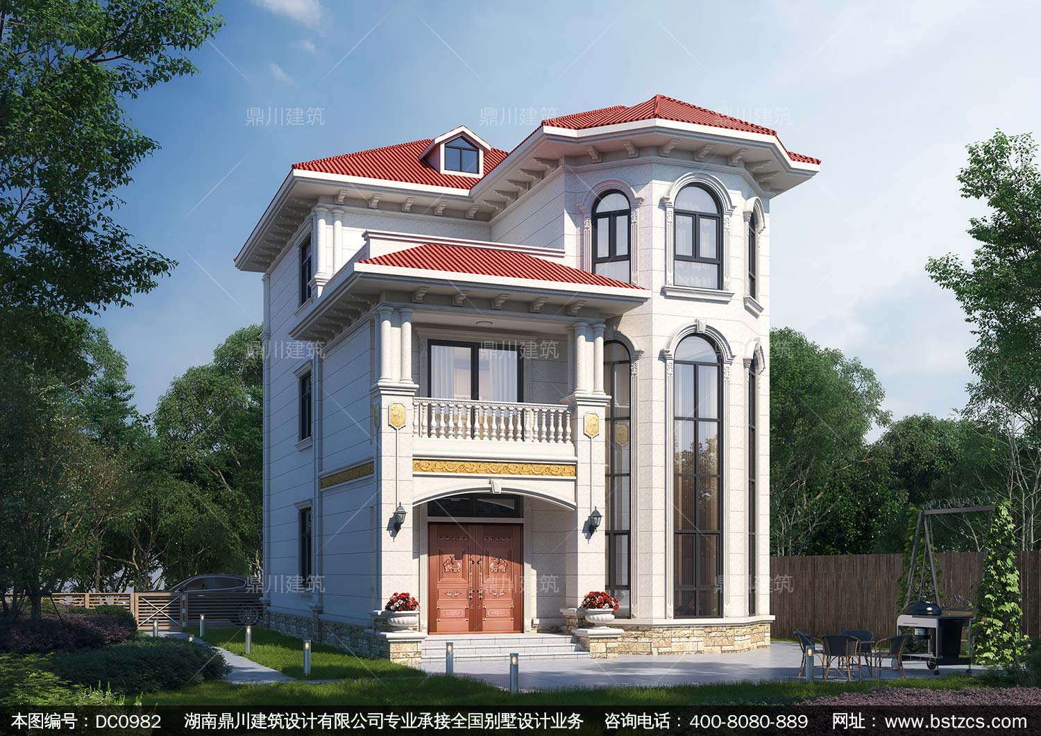 歐式三層小戶型復式別墅圖紙及效果圖_農村自建房設計,鼎川建筑