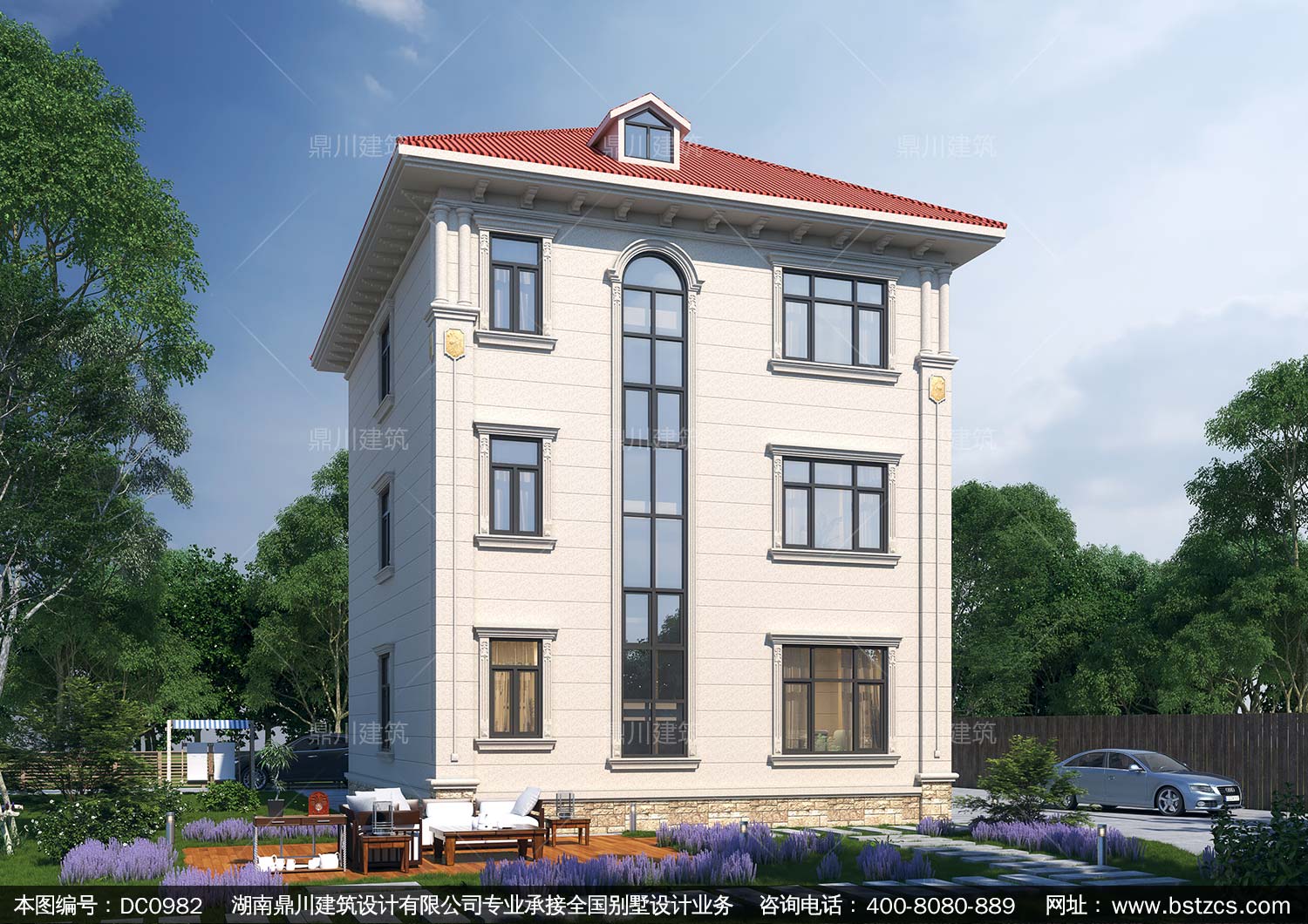 三層歐式小戶型帶露臺別墅圖紙及效果圖_農村自建房設計,鼎川建